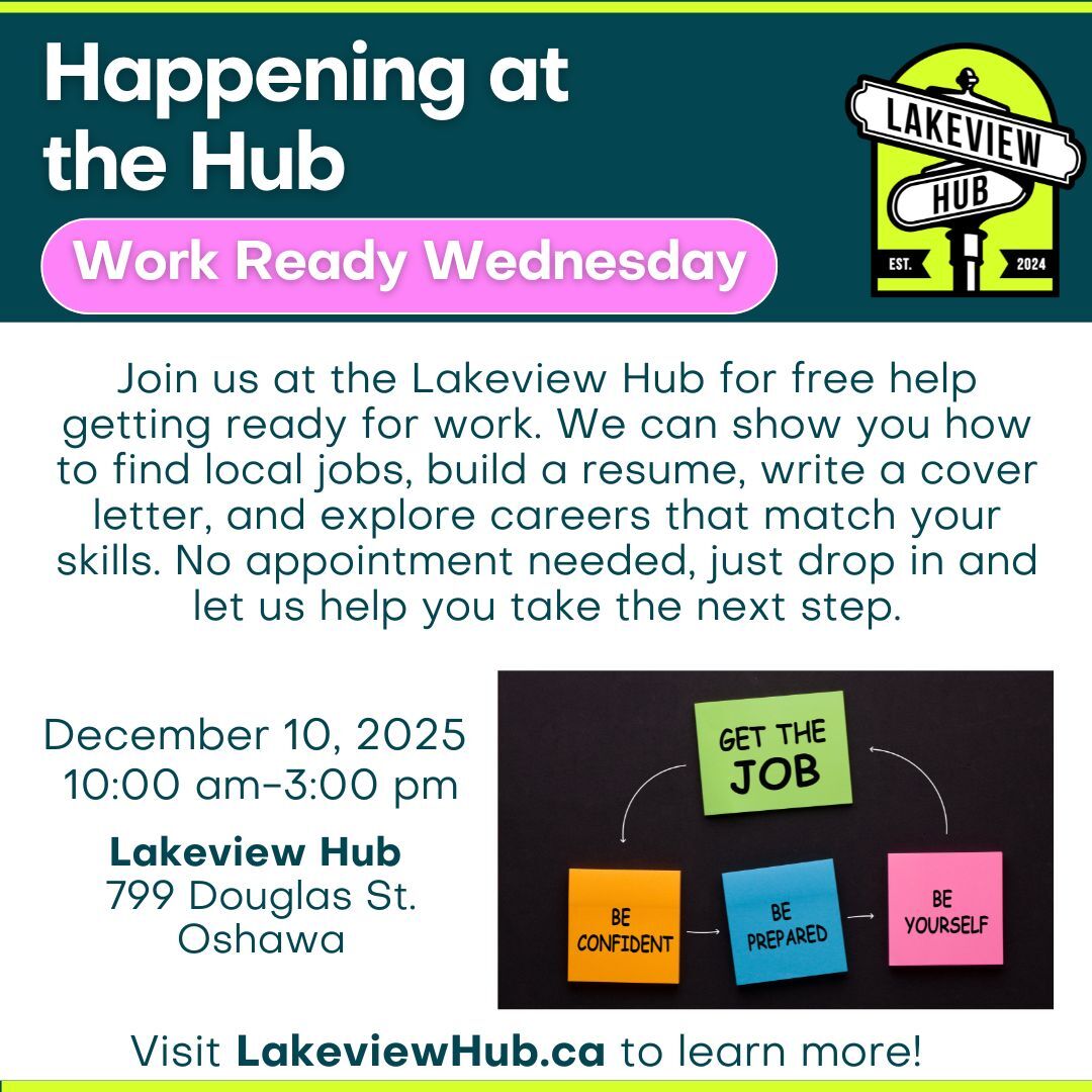 #WorkReadyWednesday #LakeviewHub #DurhamJobs #EmploymentHelp